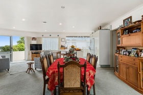 The floor plan has a separate wing for guests with their own bathroom while the master suite has an outlook over the inner estuary to the Mount. Views are enjoyed from all living areas with the formal lounge opening to a sunny deck, additional living off the kitchen plus a conservatory. A designated park for motorhome or boat
