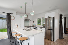 The modern kitchen has a delightful splash of colour with the pendant lights and is integrated directly with the living area, perfect for those with young families. The spacious dining enjoys it's own area and also opens to a lovely private covered patio where you can relax and enjoy your morning coffee..