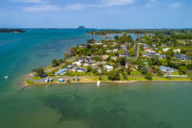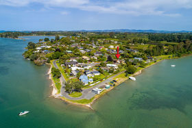 Properties in this waterfront enclave rarely come to market due to them being so tightly held. This property is no different and has been in this family for decades, where they have enjoyed all the fruits of life that living in this location provides. This solid 70's concrete block home is ready for someone to put their stamp on it, whether that's a lick of paint or a substantial renovation that's up to you! Set on 1030sqm (more or less) there is plenty of flat space to sprawl, triple garaging plus an undercover boat/carport for any toys like boats, jet ski's and paddle boards. The ground floor of this home offers a living area connected to the yard, two bedrooms, laundry and separate games room. Upstairs you have amazing raked ceilings that are so "en vogue' right now, separate dining zone, light filled kitchen, large lounge with woodburner, master with ensuite and walk in robe, study and even a little bar which is fitting for it's era. Make no bones about it this home needs some work but has solid bones to start with! Land in this location is very sought after and very rare, so seize this opportunity now before its too late.